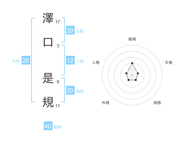 澤口 是規さんの総格は40画の2点!