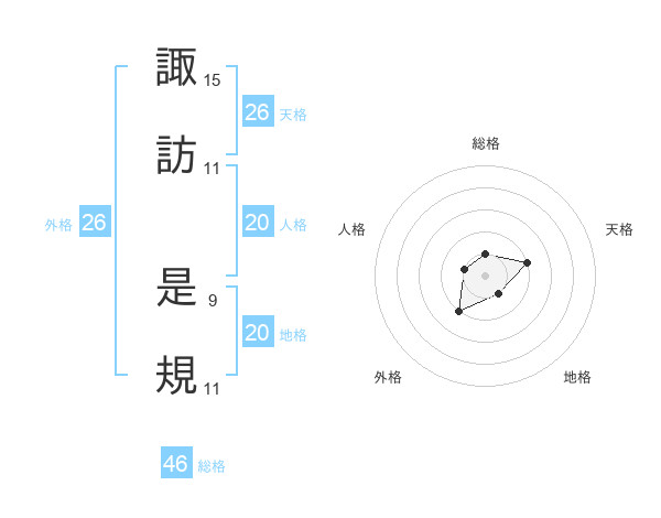 諏訪 是規さんの地格は20画の1点!