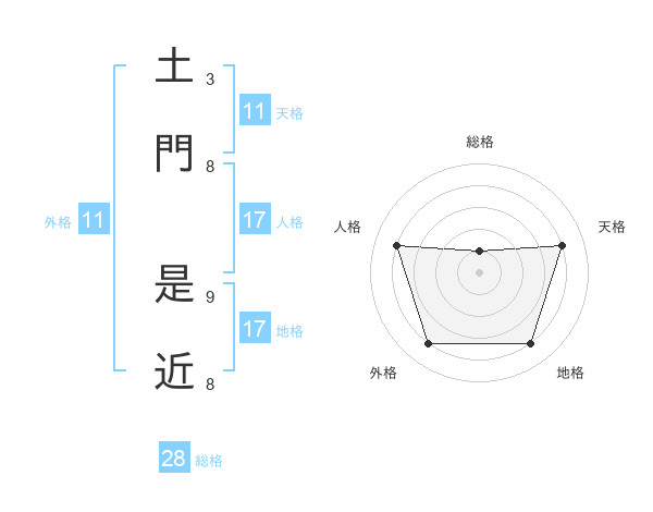 土門 是近さんの地格は17画の4点!