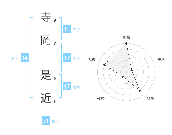 寺岡 是近さんの総格は31画の5点!