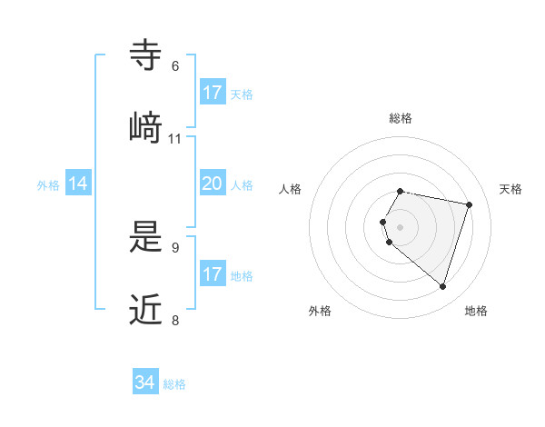 寺﨑 是近さんを姓名の画数から五運を鑑定