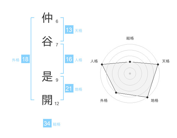 仲谷 是開さんの地格は21画の5点!