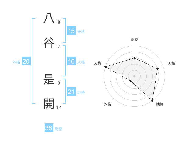 八谷 是開さんの天格は15画の4点!