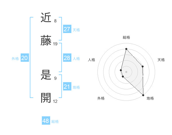 占い結果は姓名判断である以上、良い場合も悪い場合もありますが、決してお名前を誹謗中傷するものでなく、画数の自動計算によって得られたものです。また、本サイトの検索によって得られた鑑定結果で、第三者を誹謗中傷したり名誉を棄損するような行為を禁じます。