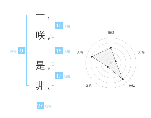 家系が持つ宿命的な運勢を表します。祖先から受け継いだ苗字ですので自分の力が及びません。家柄を象徴します。