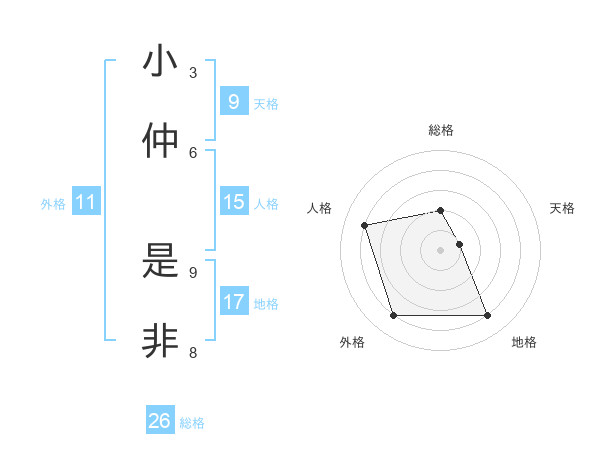 小仲 是非さんの人格は15画の4点!