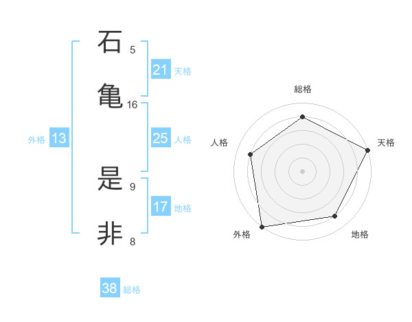 石亀 是非さんの天格は21画の5点!