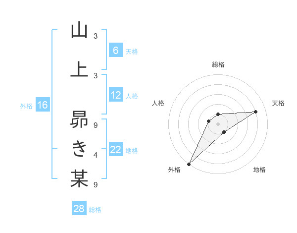 山上 昴き某さんを姓名の画数から五運を鑑定