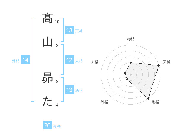 髙山 昴たさんの地格は13画の5点!
