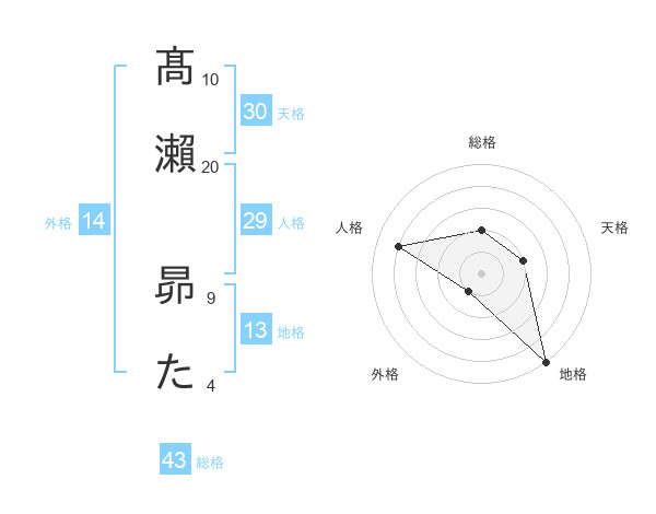 髙瀨 昴たさんを姓名の画数から五運を鑑定