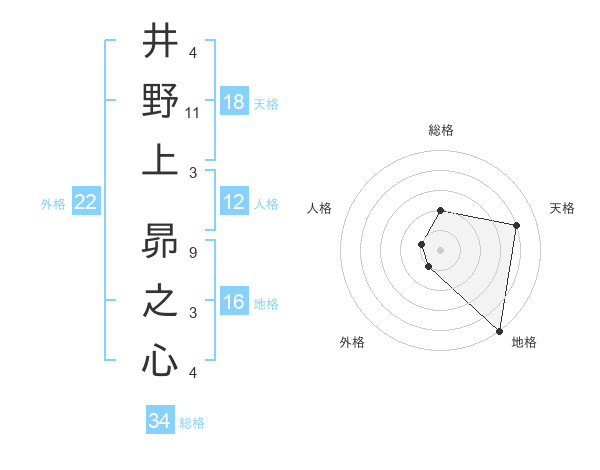 井野上 昴之心さんを姓名の画数から五運を鑑定