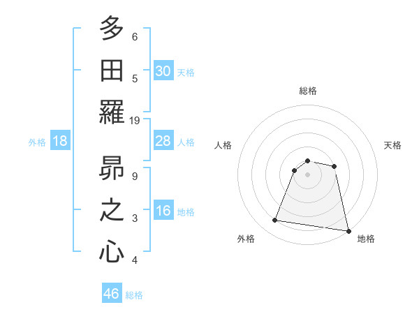 多田羅 昴之心さんを姓名の画数から五運を鑑定