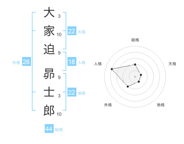 大家迫 昴士郎さんを姓名の画数から五運を鑑定