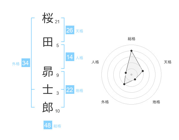 桜田 昴士郎さんの総格は48画の4点