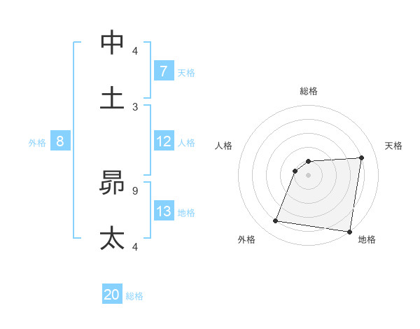中土 昴太さんを姓名の画数から五運を鑑定
