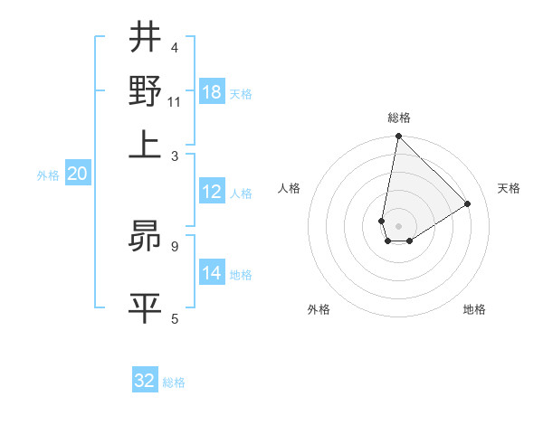井野上 昴平さんの総格は32画の5点!