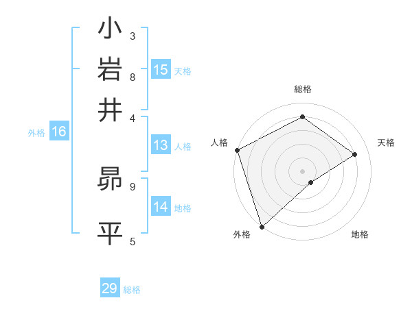 小岩井 昴平さんを姓名の画数から五運を鑑定