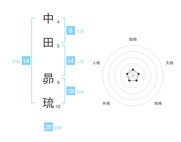 中田 昴琉さんを姓名の画数から五運を鑑定