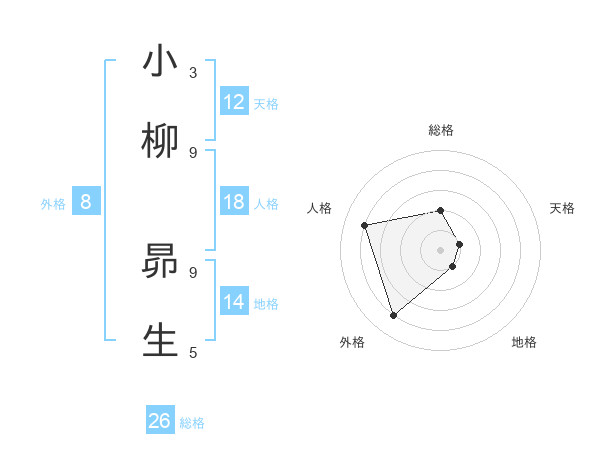 小柳 昴生さんを姓名の画数から五運を鑑定