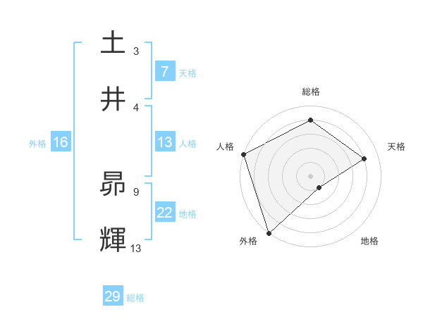 土井 昴輝さんの総格は29画の4点!