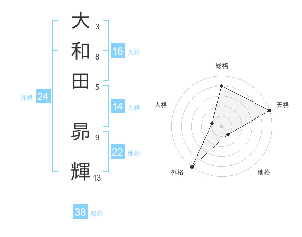 大和田 昴輝さんを姓名の画数から五運を鑑定