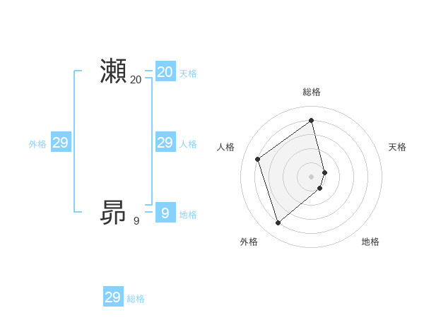 瀬 昴さんの総格は29画の4点!