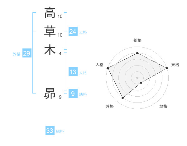 高草木 昴さんの天格は24画の5点!