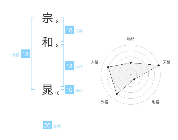 宗和 晁さんの総格は26画の2点!