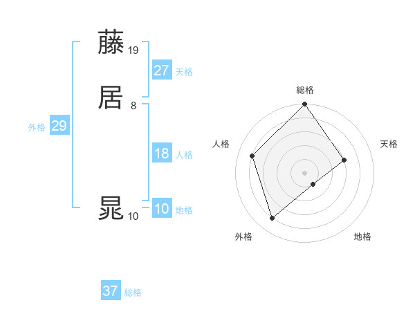 藤居 晁さんの総格は37画の5点!
