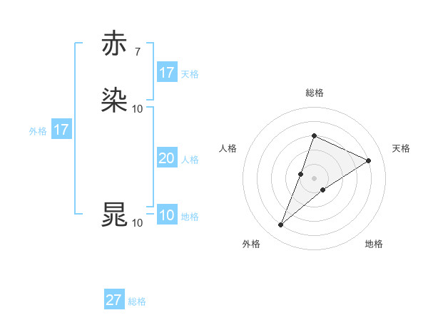 赤染 晁さんの天格は17画の4点!