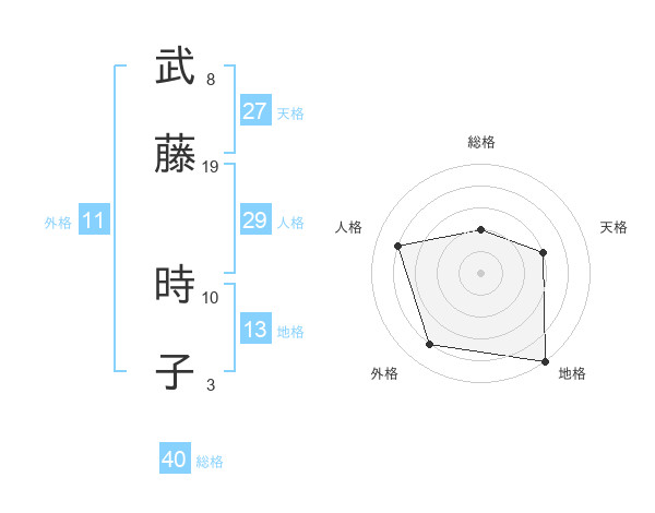 武藤 時子さんの地格は13画の5点!