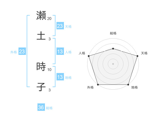 瀬土 時子さんを姓名の画数から五運を鑑定