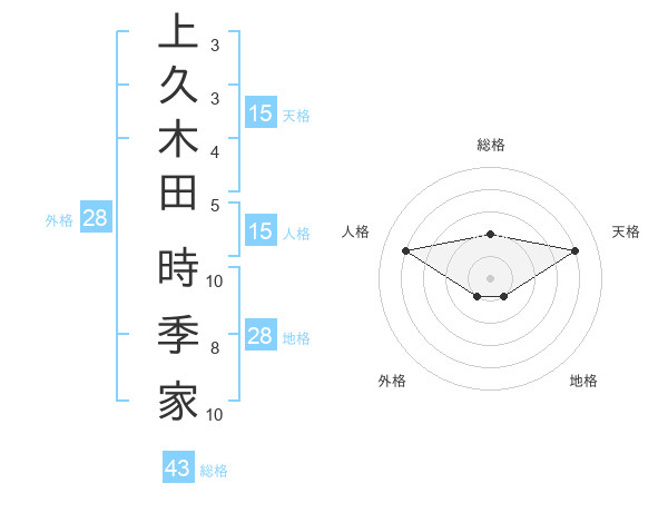 上久木田 時季家さんを姓名の画数から五運を鑑定