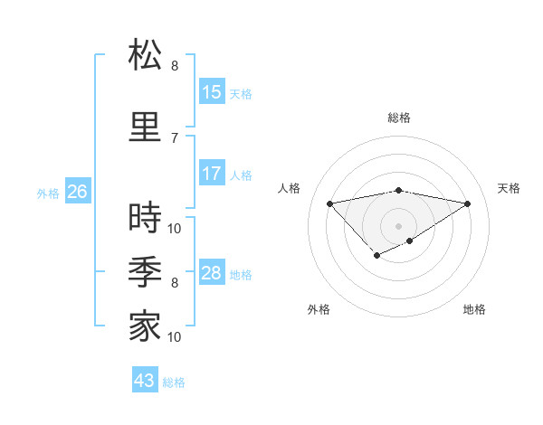 松里 時季家さんの総格は43画の2点