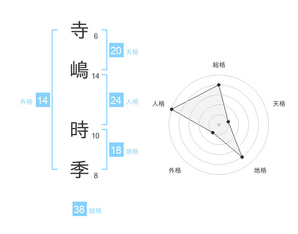 寺嶋 時季さんの総格は38画の4点!