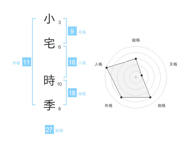 小宅 時季さんの総格は27画の3点!