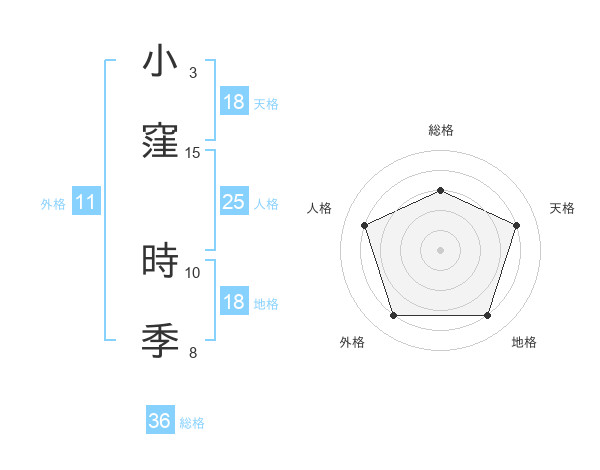 小窪 時季さんの天格は18画の4点!