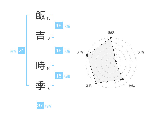 飯吉 時季さんの総格は37画の5点!