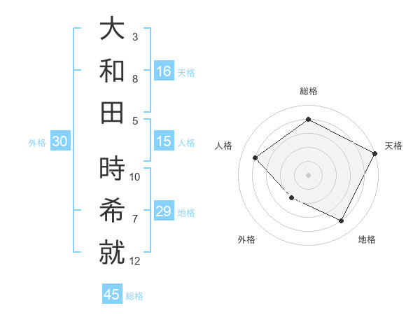 大和田 時希就さんを姓名の画数から五運を鑑定