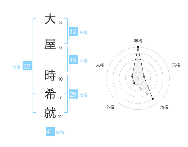 大屋 時希就さんを姓名の画数から五運を鑑定