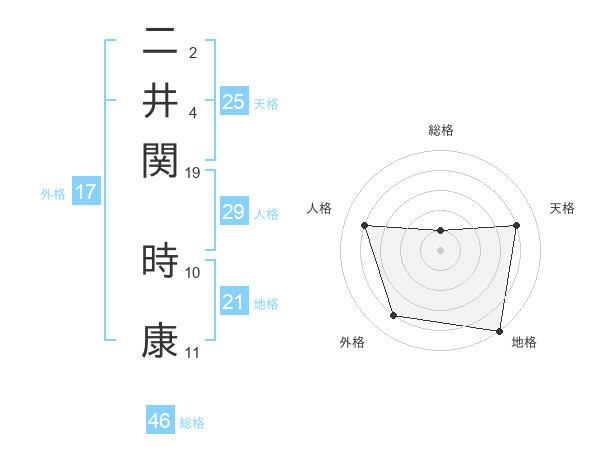 二井関 時康さんの地格は21画の5点!