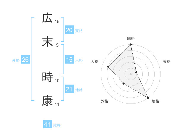 広末 時康さんの総格は41画の5点!