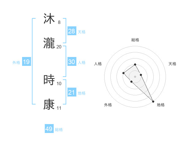 沐瀧 時康さんを姓名の画数から五運を鑑定
