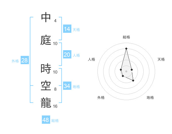 中庭 時空龍さんの総格は48画の4点!