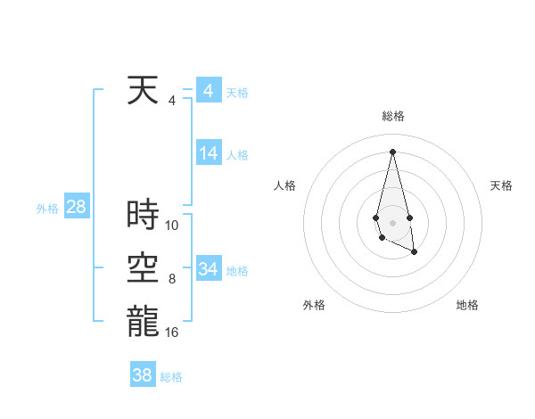 天 時空龍さんの総格は38画の4点!