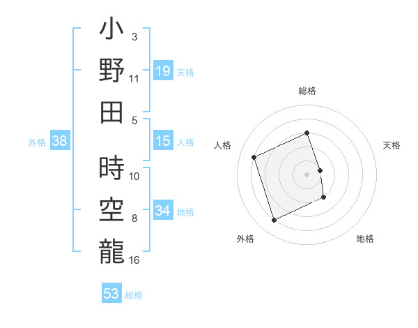 小野田 時空龍さんを姓名の画数から五運を鑑定