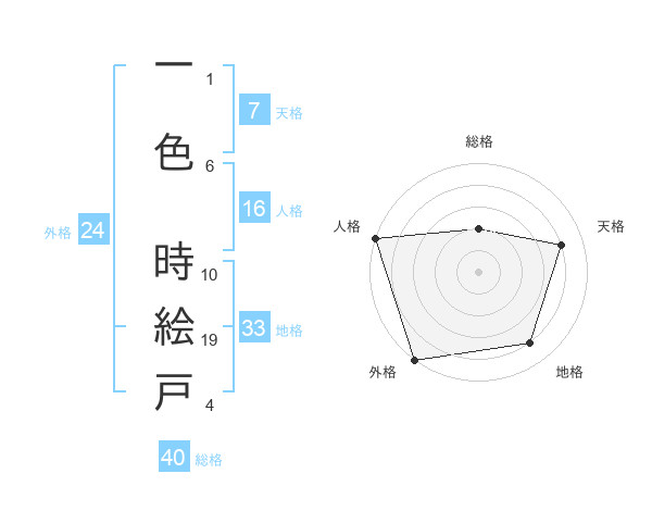 一色 時絵戸さんを姓名の画数から五運を鑑定