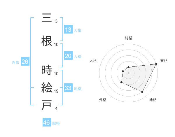 三根 時絵戸さんを姓名の画数から五運を鑑定