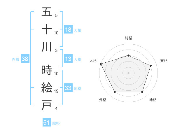 五十川 時絵戸さんを姓名の画数から五運を鑑定