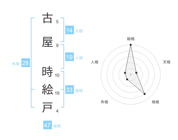 古屋 時絵戸さんの総格は47画の5点!